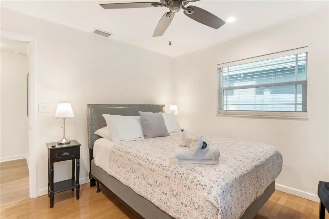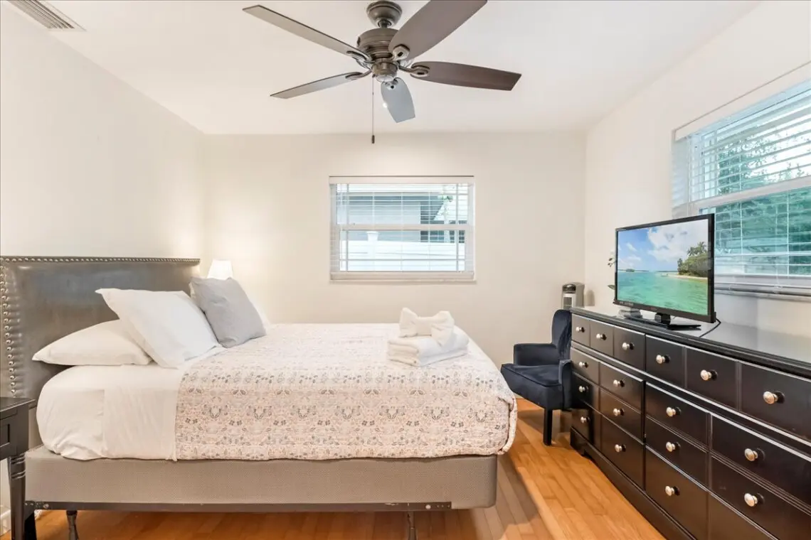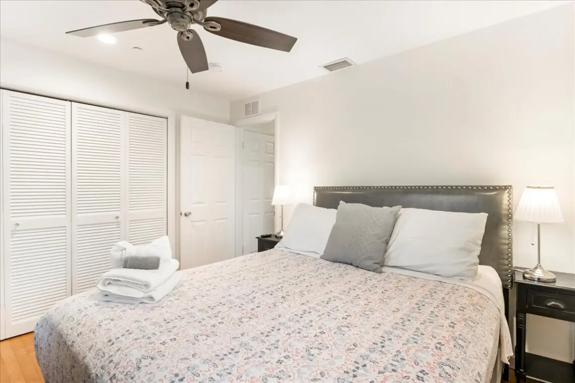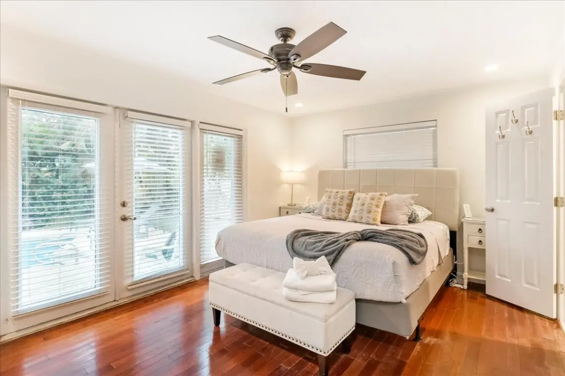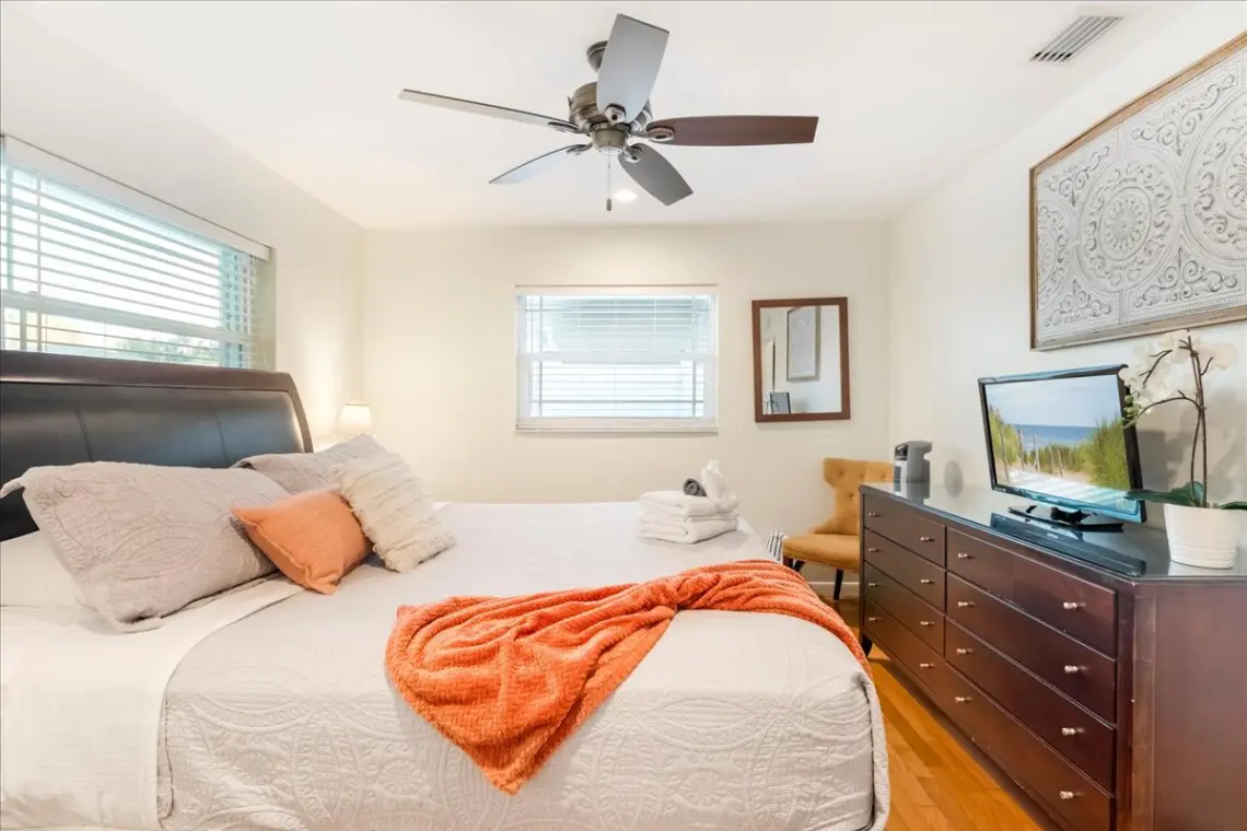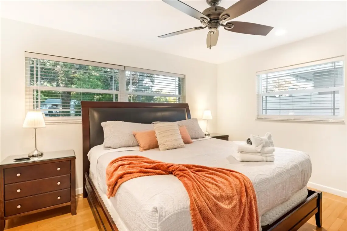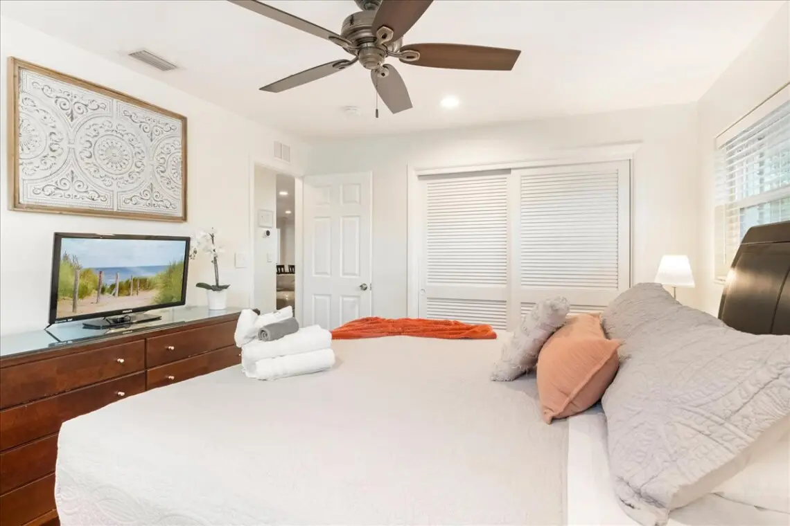 The primary suite offers a relaxing retreat with a king bed and a peaceful atmosphere, perfect for unwinding at the end of the day.