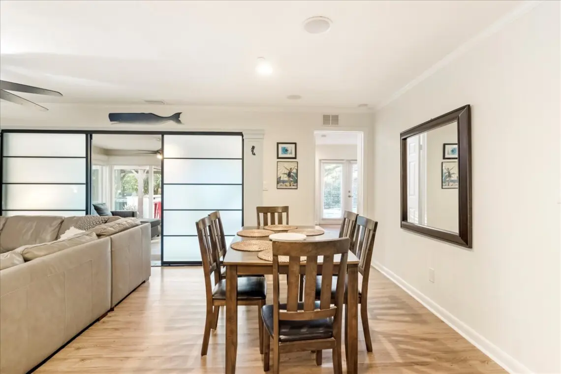 Upon arrival, you’ll find easy parking and seamless entry into a bright, welcoming home designed for relaxed coastal living. The layout flows comfortably from the living spaces into the kitchen and out to the private backyard, making it ideal for families and groups who want both connection and privacy during their stay.